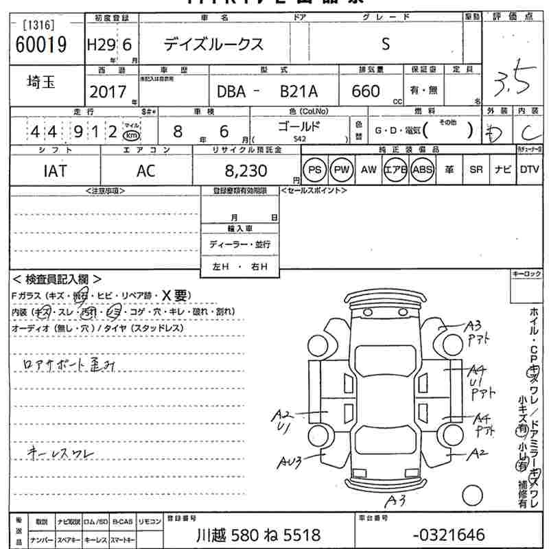 NISSAN DAYZ ROOX 2017 г., лот № 60019