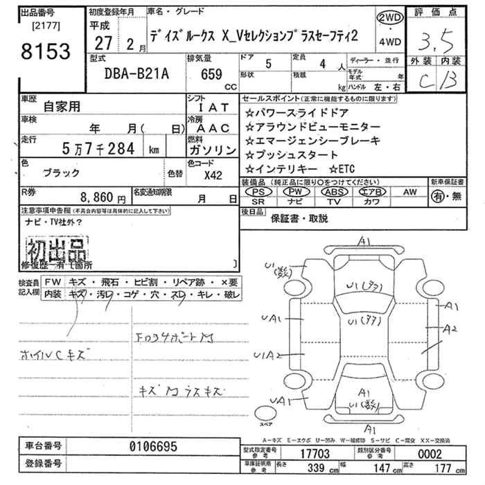 | HIGHWAY STAR X V SELECTION | DBA-B21A | 3B20 | Full-time 4WD | CVT | 659cc | 49ps(36kW)/6500rpm | AИ-92 | 1 804 680 | |