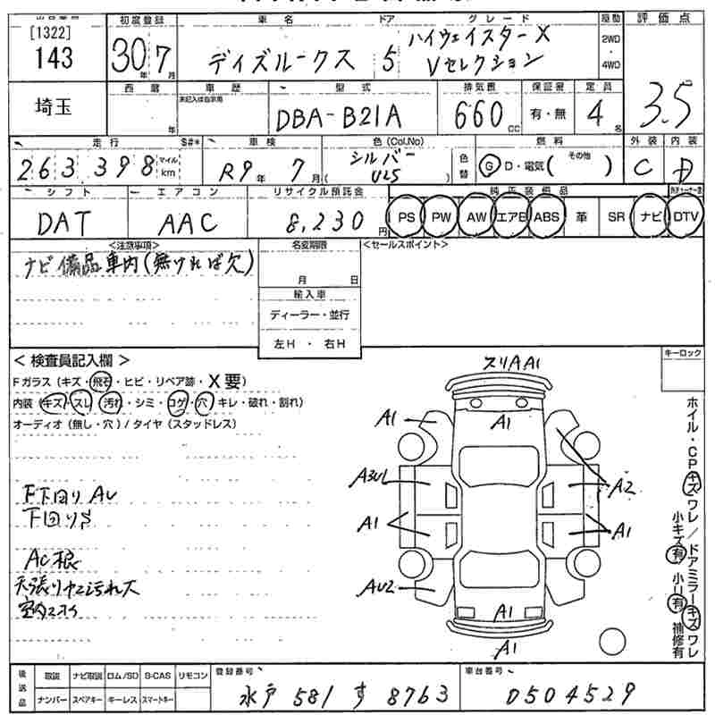 | X V SELECTION | DBA-B21A | 3B20 | FF | CVT | 659cc | 49ps(36kW)/6500rpm | AИ-92 | 1 501 200 | |