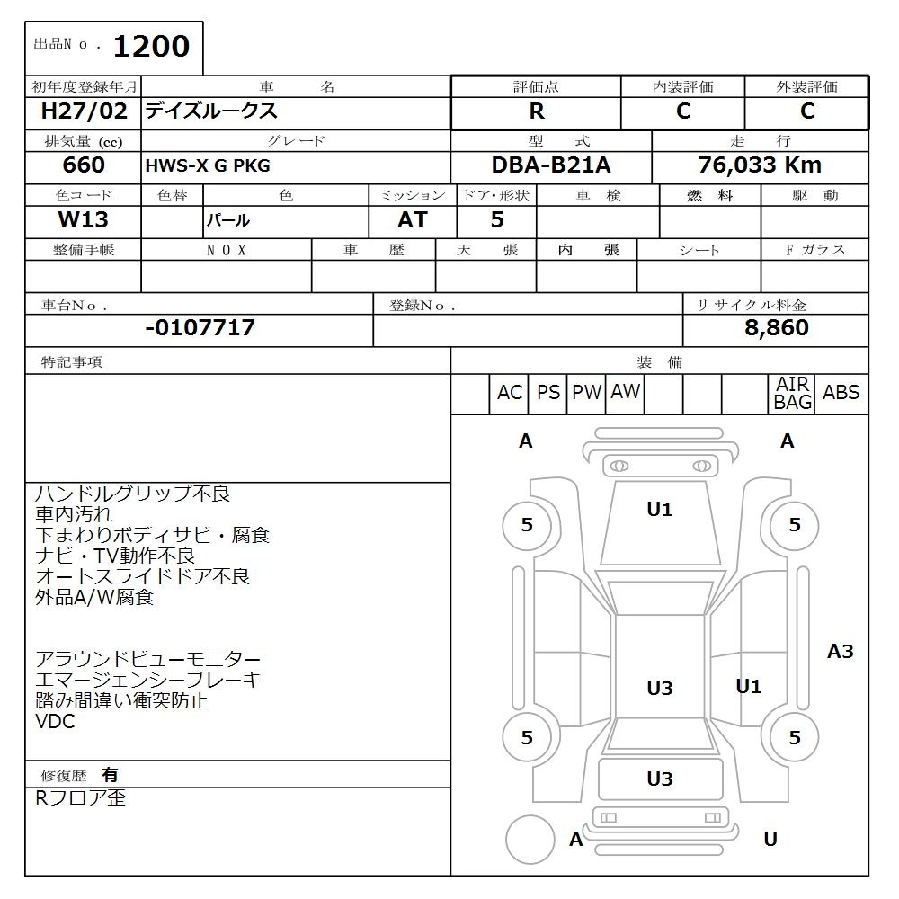 Статус выставлен на аукцион Лот 1200 Аукцион Nissan Osaka Дата аукциона 16.03.2026