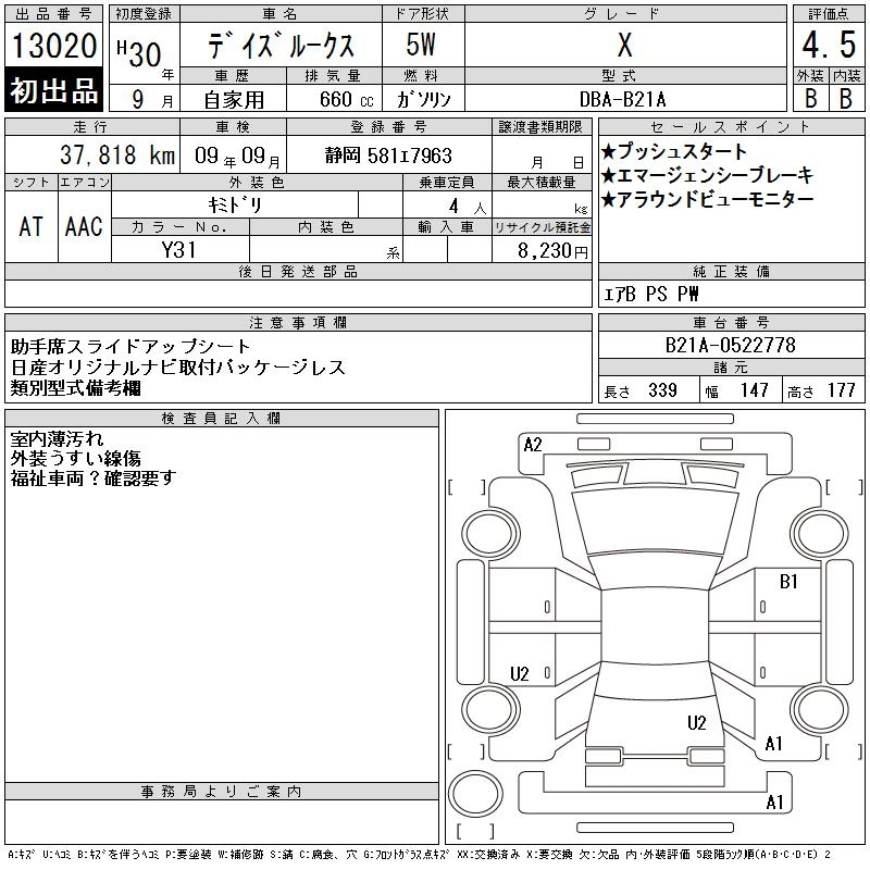 | S EMERGENCY BRAKE LESS | DBA-B21A | 3B20 | FF | CVT | 659cc | 49ps(36kW)/6500rpm | AИ-92 | 1 245 240 |