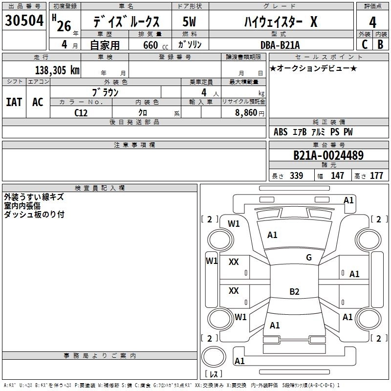 | X | DBA-B21A | 3B20 | Full-time 4WD | CVT | 659cc | 49ps(36kW)/6500rpm | AИ-92 | 1 497 960 | |