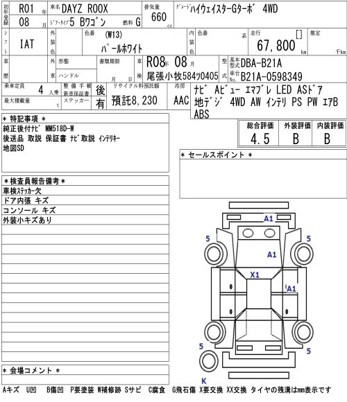 | HIGHWAY STAR X V SELECTION | DBA-B21A | 3B20 | FF | CVT | 659cc | 49ps(36kW)/6500rpm | AИ-92 | 1 735 800 | |