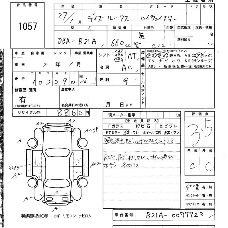 NISSAN DAYZ ROOX 2015 г., лот № 1057