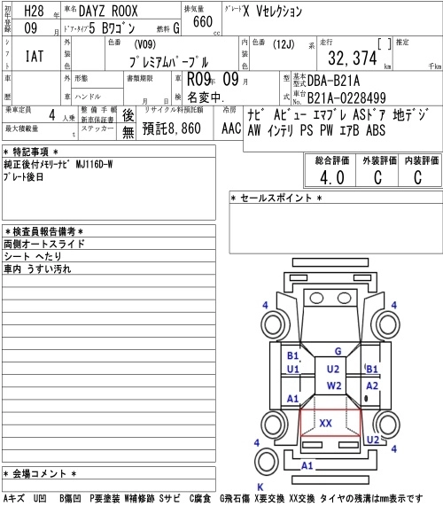 | X V SELECTION | DBA-B21A | 3B20 | Full-time 4WD | CVT | 659cc | 49ps(36kW)/6500rpm | AИ-92 | 1 620 000 | |