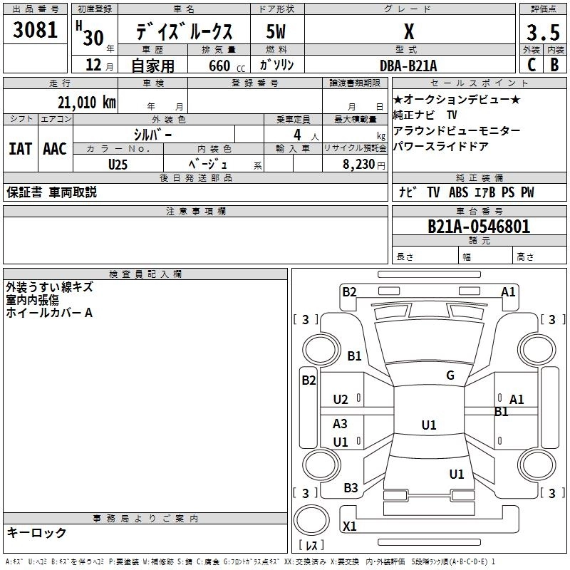 | X V SELECTION | DBA-B21A | 3B20 | FF | CVT | 659cc | 49ps(36kW)/6500rpm | AИ-92 | 1 501 200 | |