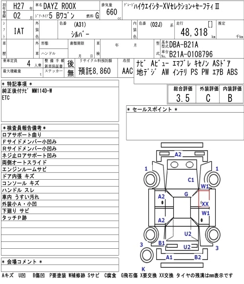 | X V SELECTION | DBA-B21A | 3B20 | Full-time 4WD | CVT | 659cc | 49ps(36kW)/6500rpm | AИ-92 | 1 620 000 | |