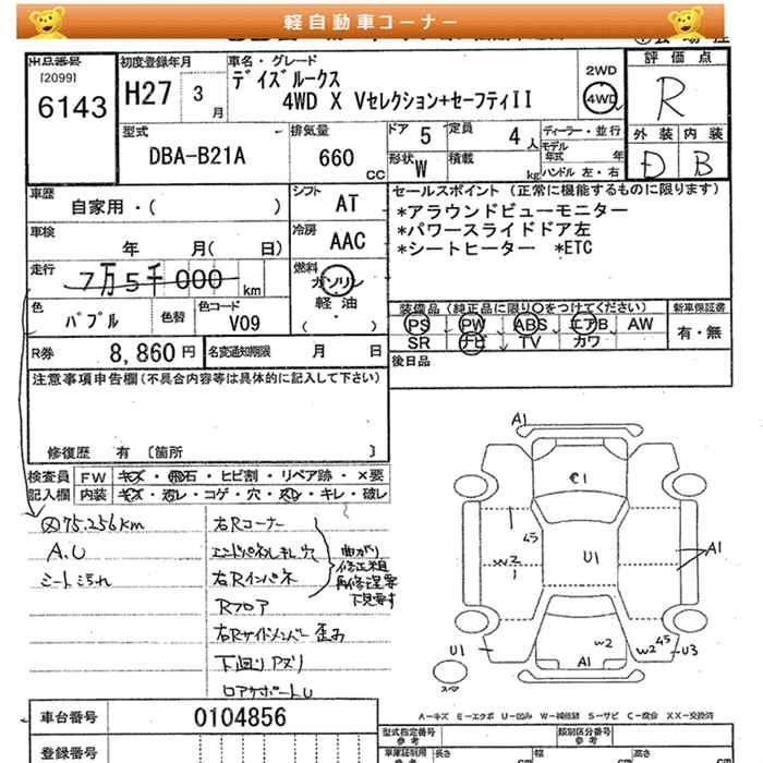 | HIGHWAY STAR X V SELECTION | DBA-B21A | 3B20 | Full-time 4WD | CVT | 659cc | 49ps(36kW)/6500rpm | AИ-92 | 1 804 680 | |
