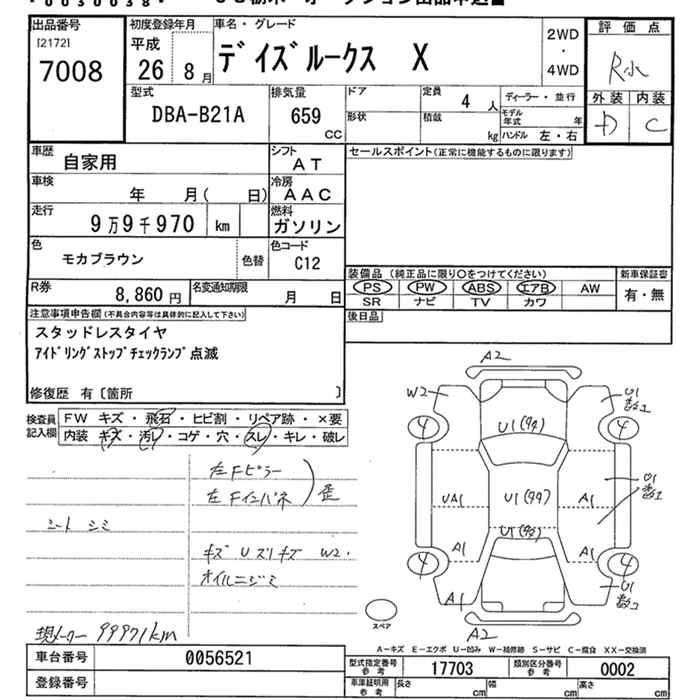 X DBA-B21A 3B20 FF CVT 659cc 49ps(36kW)/6500rpm AИ-92 1 338 750