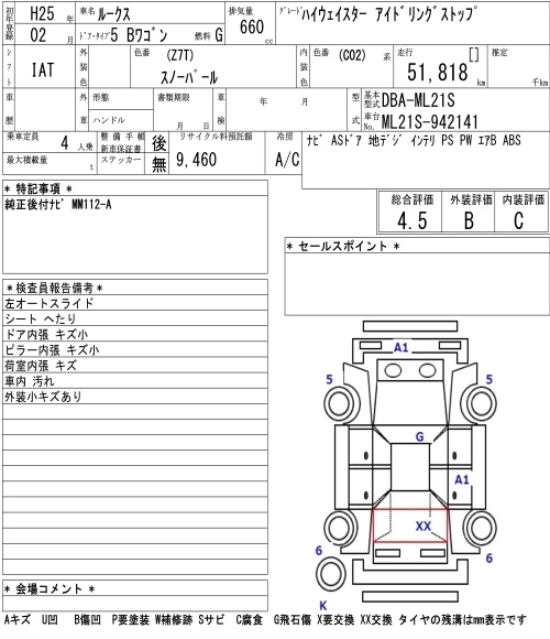 | S | 5BA-B46W | BR06 | Full-time 4WD | CVT | 659cc | 52ps(38kW)/6400rpm | AИ-92 | 1 405 080 | |