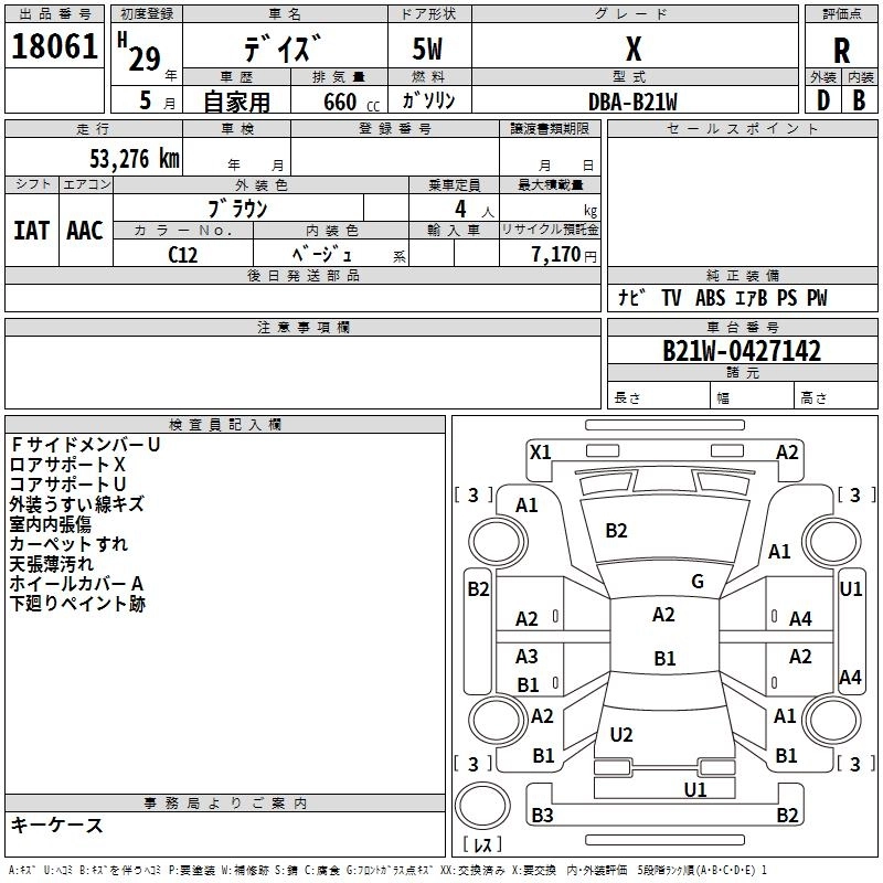 | X V SELECTION | DBA-B21W | 3B20 | FF | CVT | 659cc | 49ps(36kW)/6500rpm | AИ-92 | 1 332 720 | |