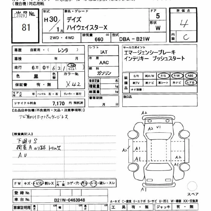 | X | DBA-B21W | 3B20 | FF | CVT | 659cc | 49ps(36kW)/6500rpm | AИ-92 | 1 306 800 | |