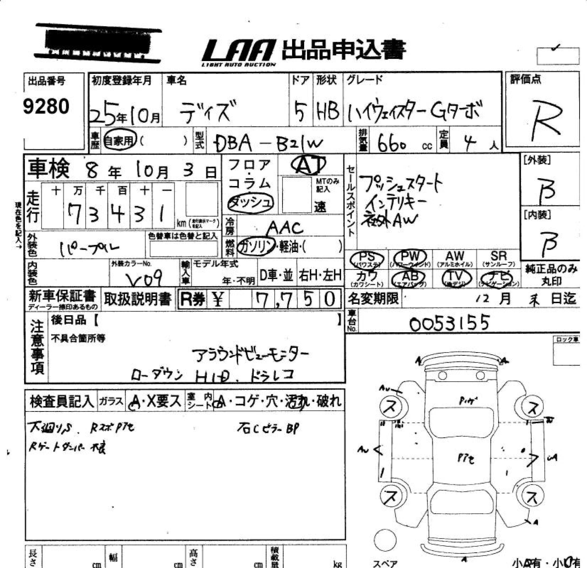 | S | DBA-B21W | 3B20 | Full-time 4WD | CVT | 659cc | 49ps(36kW)/6500rpm | AИ-92 | 1 237 950 | |