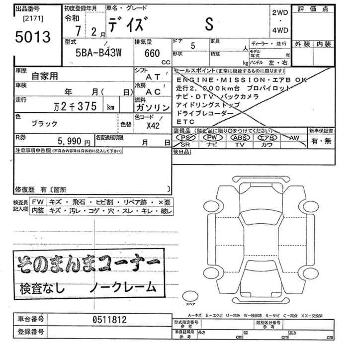 Статус выставлен на аукцион Лот 5013 Аукцион JU Tokyo Дата аукциона 02.02.2026