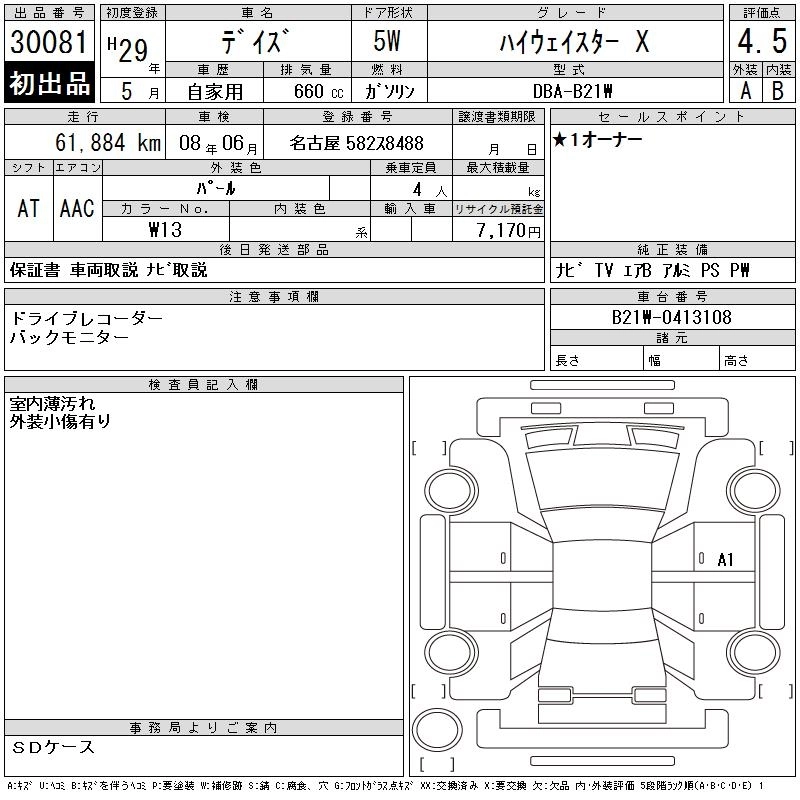 NISSAN DAYZ 2017 г., лот № 30081