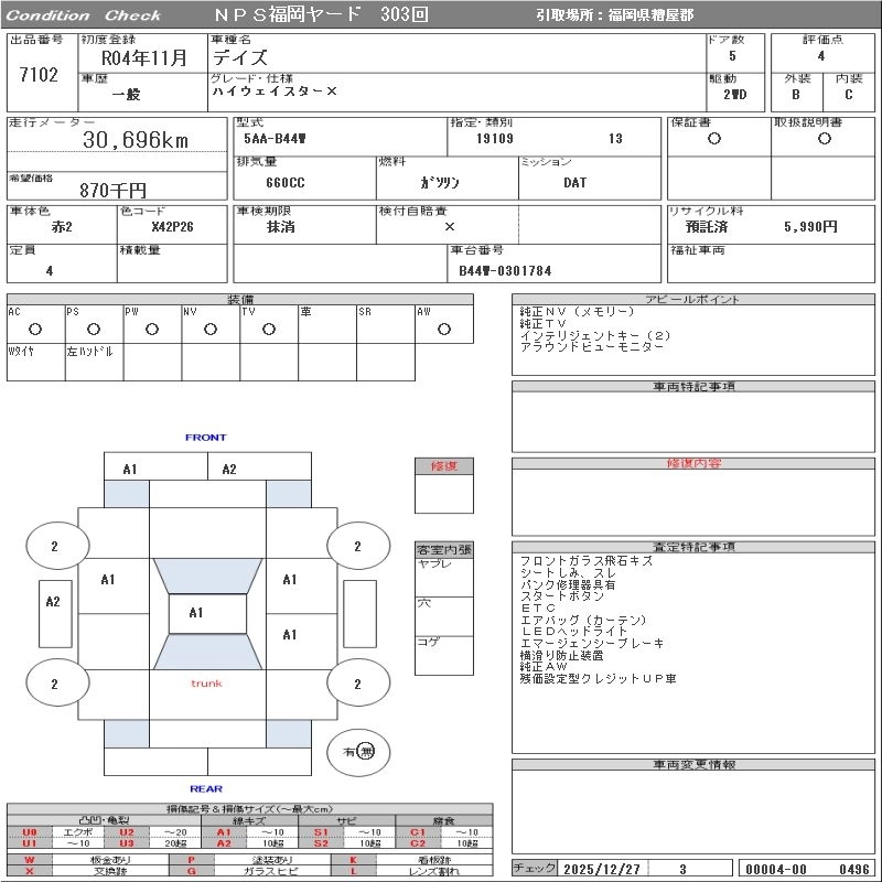 Статус выставлен на аукцион Лот 7102 Аукцион NPS Fukuoka Дата аукциона 03.02.2026