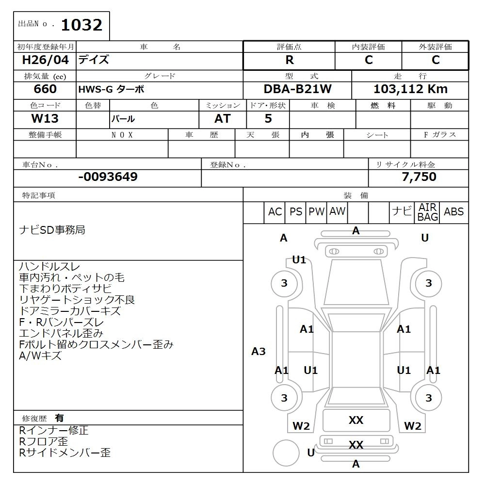 | X | DBA-B21W | 3B20 | FF | CVT | 659cc | 49ps(36kW)/6500rpm | AИ-92 | 1 254 960 | |