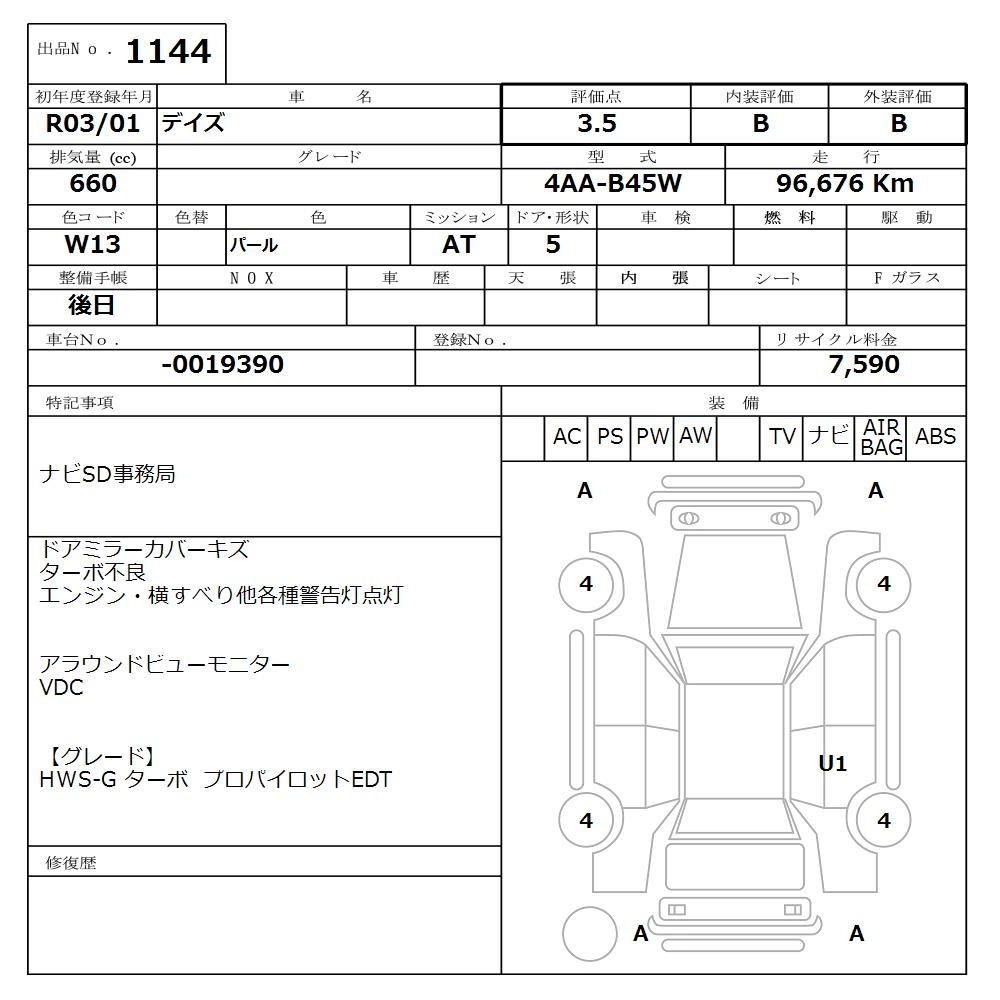 NISSAN DAYZ 2021 г., лот № 1144