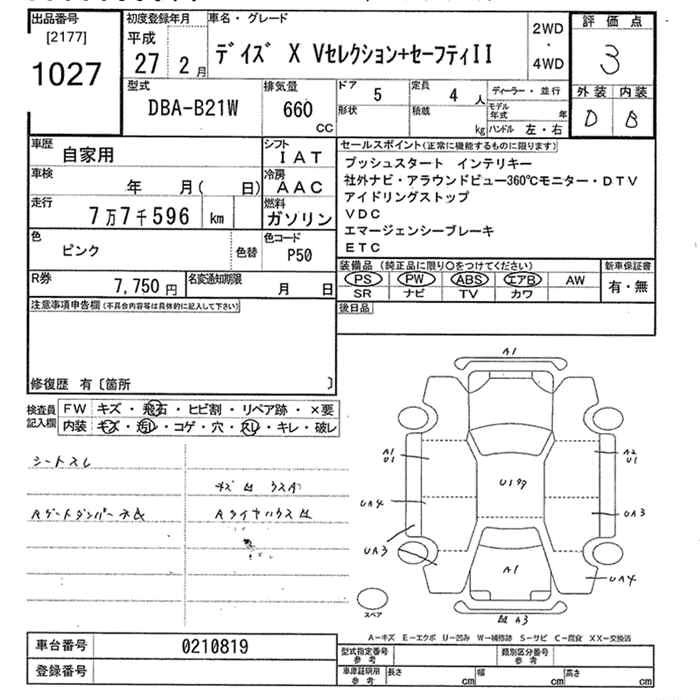 | X | DBA-B21W | 3B20 | FF | CVT | 659cc | 49ps(36kW)/6500rpm | AИ-92 | 1 318 680 | |