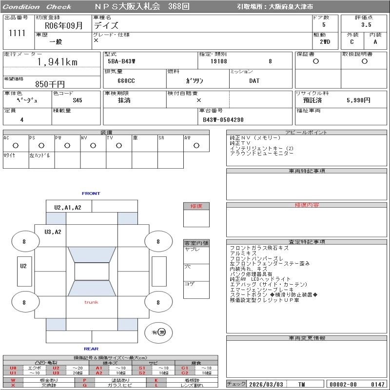 Статус продан Лот 1111 Аукцион NPS Osaka Дата аукциона 17.03.2026