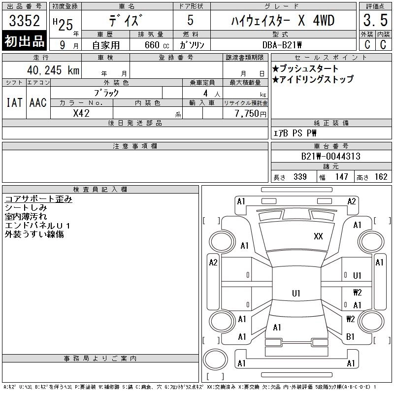 Год выпуска2013 Пробег 40 000 км КузовB21W Комплектация HIGHWAY STAR X 4WD