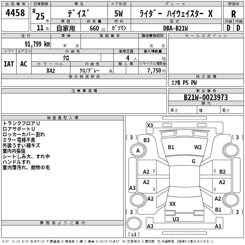 | X | DBA-B21W | 3B20 | Full-time 4WD | CVT | 659cc | 49ps(36kW)/6500rpm | AИ-92 | 1 337 700 | |