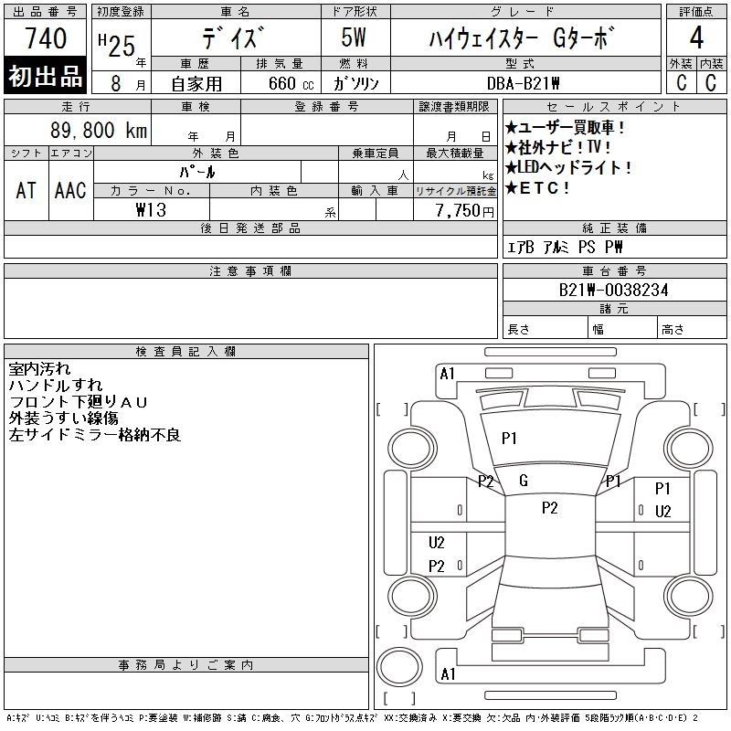 NISSAN DAYZ 2013 г., лот № 740
