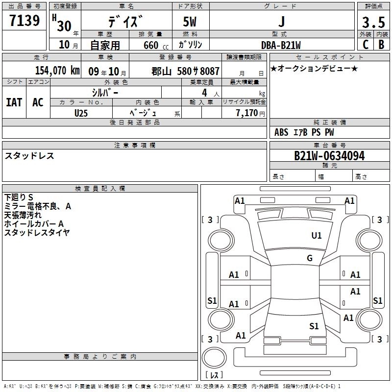 | X | DBA-B21W | 3B20 | FF | CVT | 659cc | 49ps(36kW)/6500rpm | AИ-92 | 1 306 800 | |