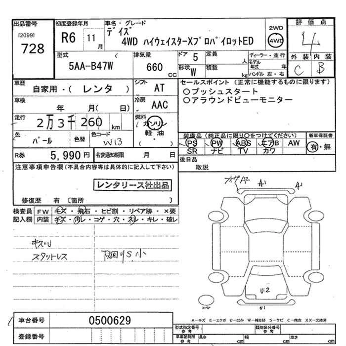 Стартовая цена авто на аукционе 0 ¥