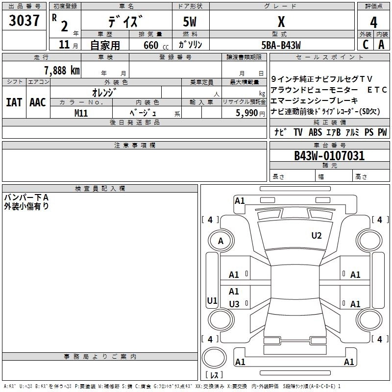 | X | 5BA-B43W | BR06 | FF | CVT | 659cc | 52ps(38kW)/6400rpm | AИ-92 | 1 380 500 | |