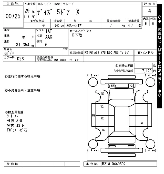 | X V SELECTION | DBA-B21W | 3B20 | FF | CVT | 659cc | 49ps(36kW)/6500rpm | AИ-92 | 1 332 720 | |
