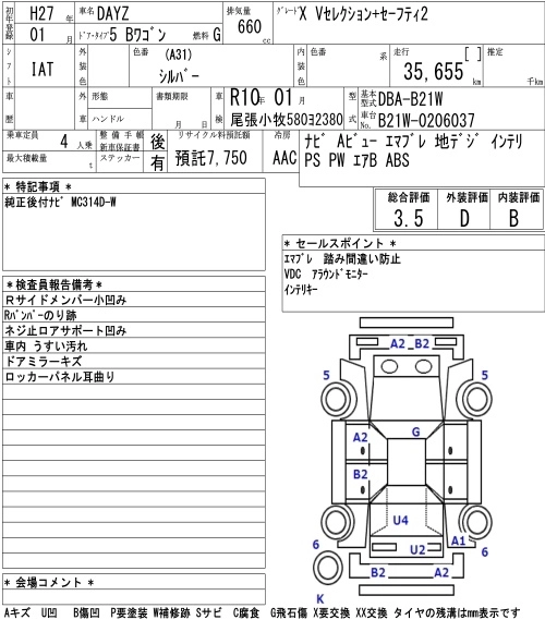 | X | DBA-B21W | 3B20 | FF | CVT | 659cc | 49ps(36kW)/6500rpm | AИ-92 | 1 318 680 | |