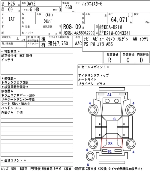 | HIGHWAY STAR G | DBA-B21W | 3B20 | FF | CVT | 659cc | 49ps(36kW)/6500rpm | AИ-92 | 1 379 700 | |