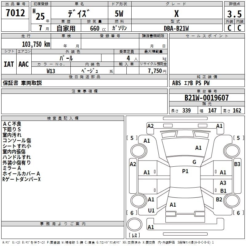 | X | DBA-B21W | 3B20 | FF | CVT | 659cc | 49ps(36kW)/6500rpm | AИ-92 | 1 220 100 | |