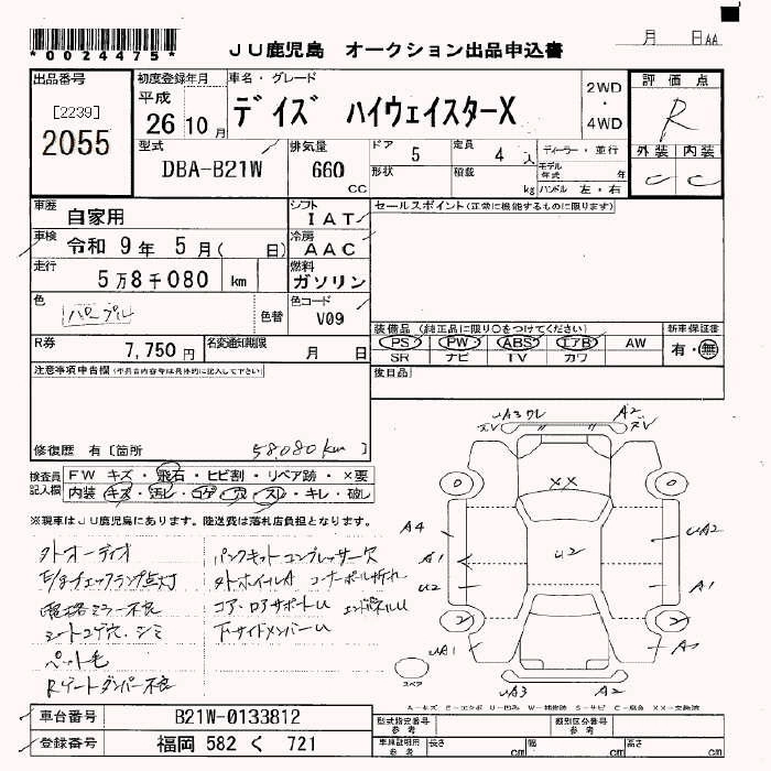 | HIGHWAY STAR X V SELECTION +SAFETY II | DBA-B21W | 3B20 | Full-time 4WD | CVT | 659cc | 49ps(36kW)/6500rpm | AИ-92 | 1 527 120 | |
