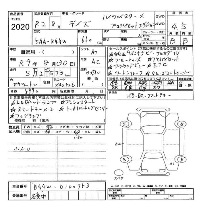 | HIGHWAY STAR G TURBO | 4AA-B48W | BR06-SM21 | Full-time 4WD | CVT | 659cc | 64ps(47kW)/5600rpm | AИ-92 | 1 783 100 | |