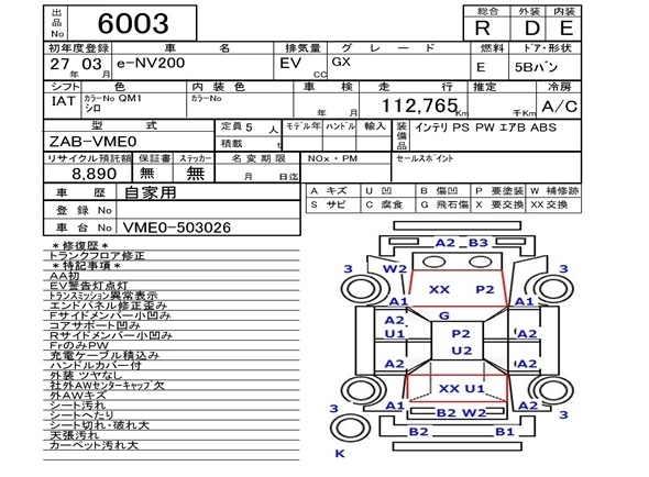 NISSAN E-NV200 VAN 2015 г., лот № 6003