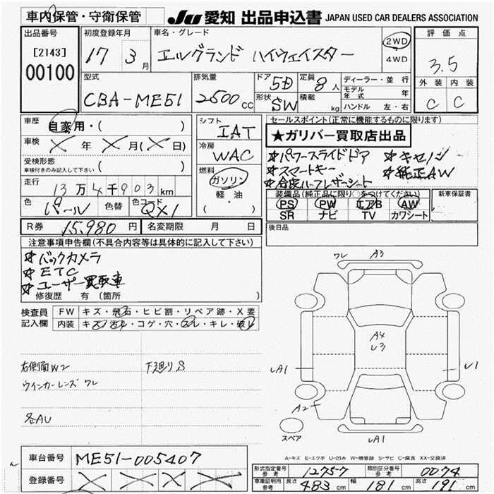 | HIGHWAY STAR PREMIUM NAVI EDITION | CBA-NE51 | VQ35DE | Full-time 4WD | 5AT | 3498cc | 240ps(177kW)/6000rpm | AИ-95 | 4 158 000 | |