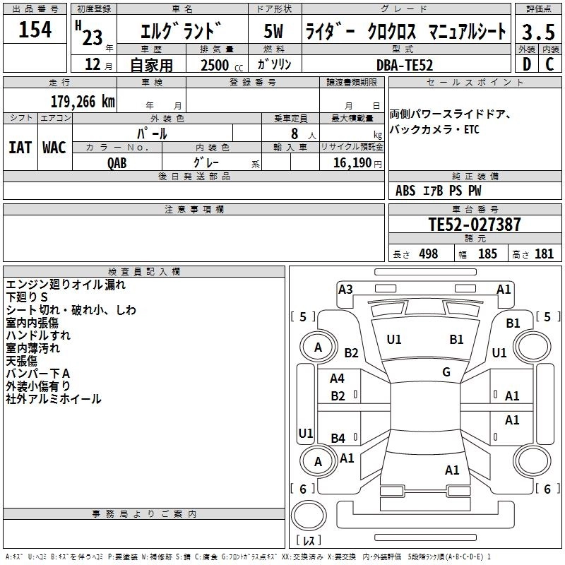 NISSAN ELGRAND 2011 г., лот № 154
