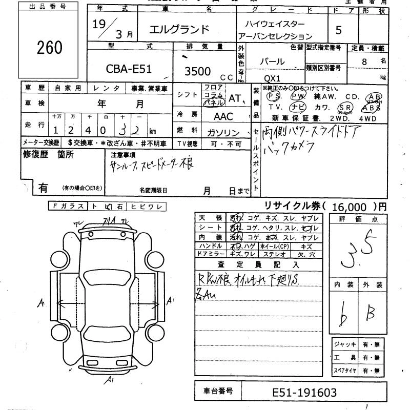 | 350HIGHWAY STAR BLACK LEATHER EDITION | CBA-E51 | VQ35DE | FR | 5AT | 3498cc | 240ps(177kW)/6000rpm | AИ-95 | 3 528 000 | |