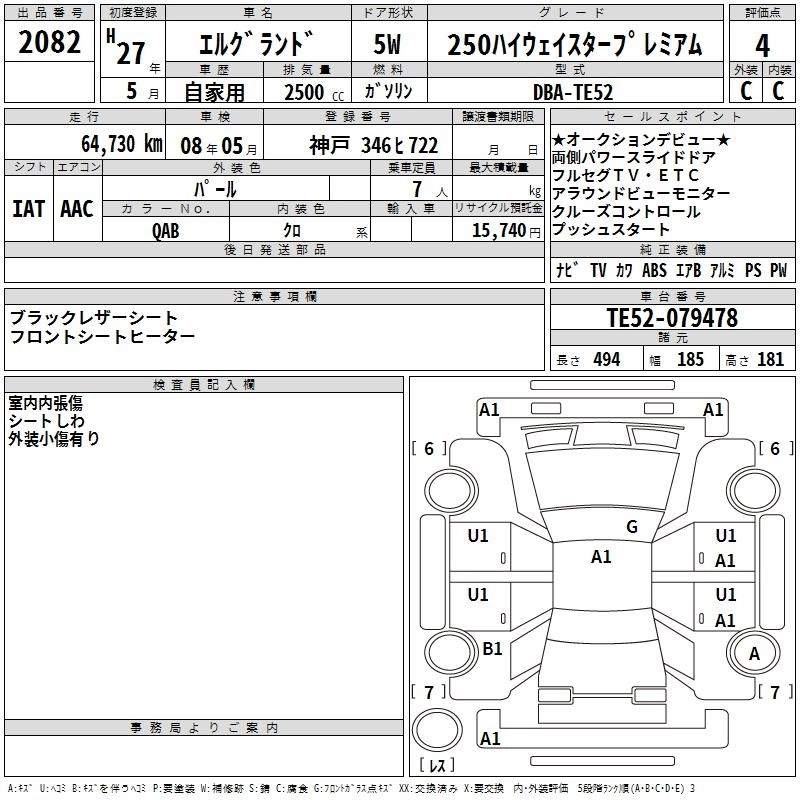 | 250HIGHWAY STAR S | DBA-TE52 | QR25DE | FF | CVT | 2488cc | 170ps(125kW)/5600rpm | AИ-92 | 3 395 520 | |
