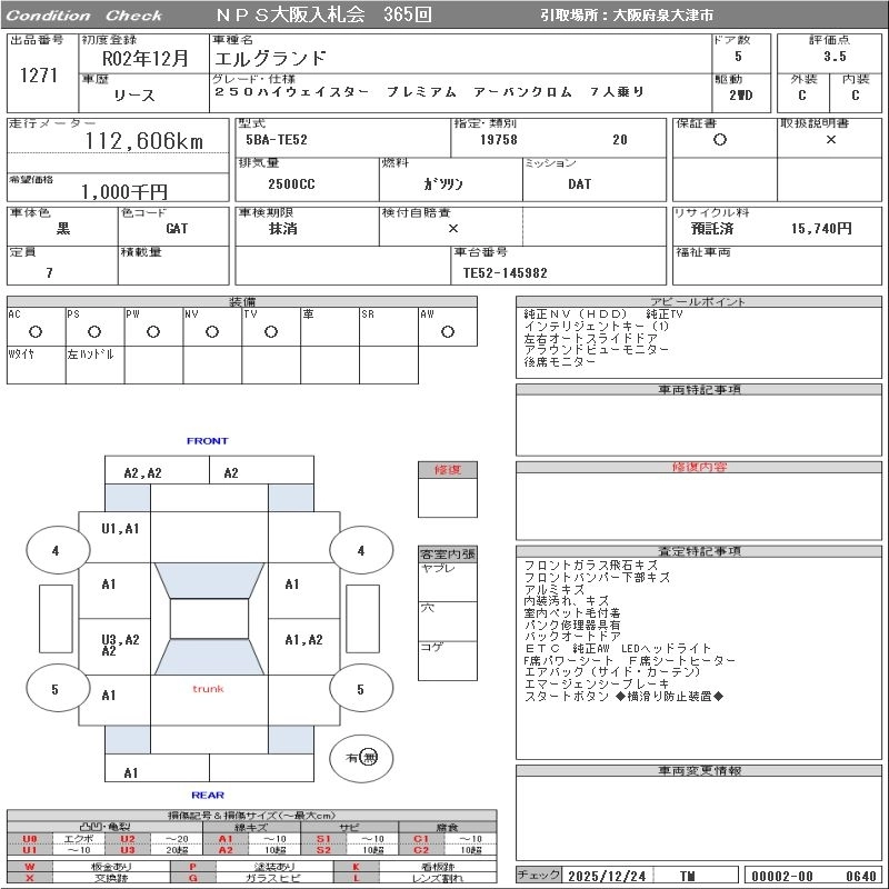 NISSAN ELGRAND 2020 г., лот № 1271