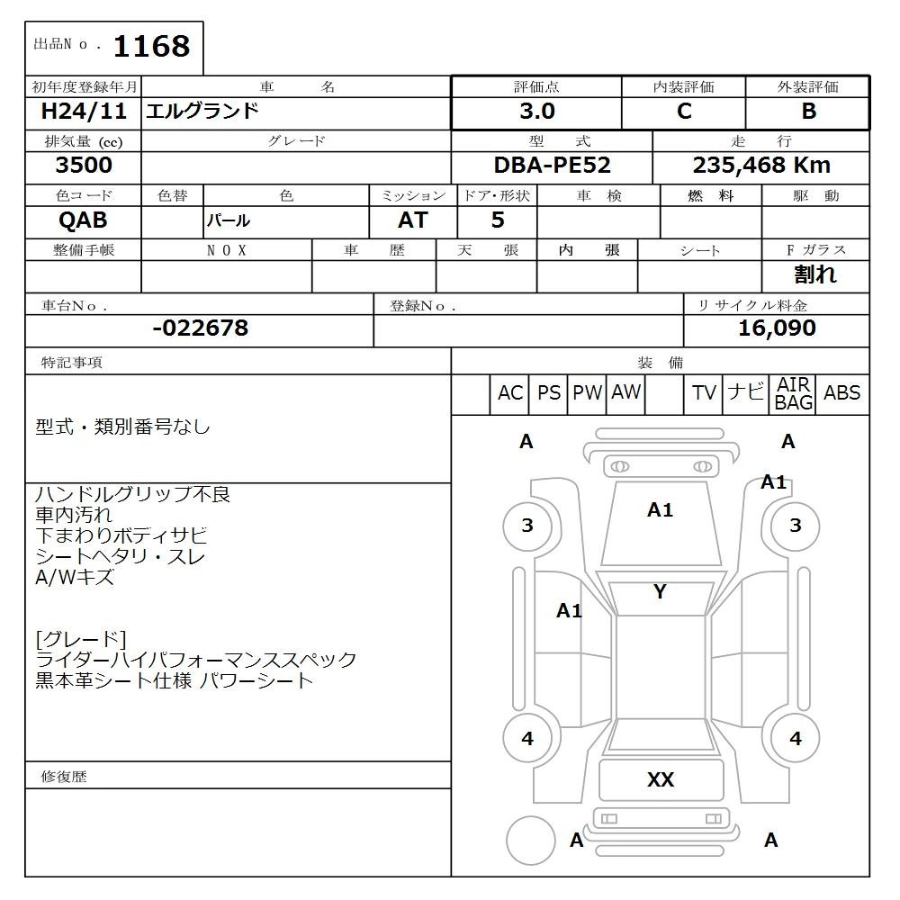 | 350HIGHWAY STAR URBAN CHROME BLACK LEATHER | DBA-PNE52 | VQ35DE | Full-time 4WD | CVT | 3498cc | 280ps(206kW)/6400rpm | AИ-95 | 4 609 500 | |