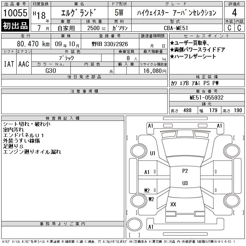 | RIDER ALPHAII | CBA-MNE51 | VQ25DE | Full-time 4WD | 5AT | 2495cc | 186ps(137kW)/6000rpm | AИ-92 | 3 874 500 | |