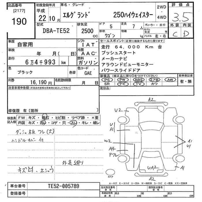| 350HIGHWAY STAR | DBA-PE52 | VQ35DE | FF | CVT | 3498cc | 280ps(206kW)/6400rpm | AИ-95 | 3 853 500 | |