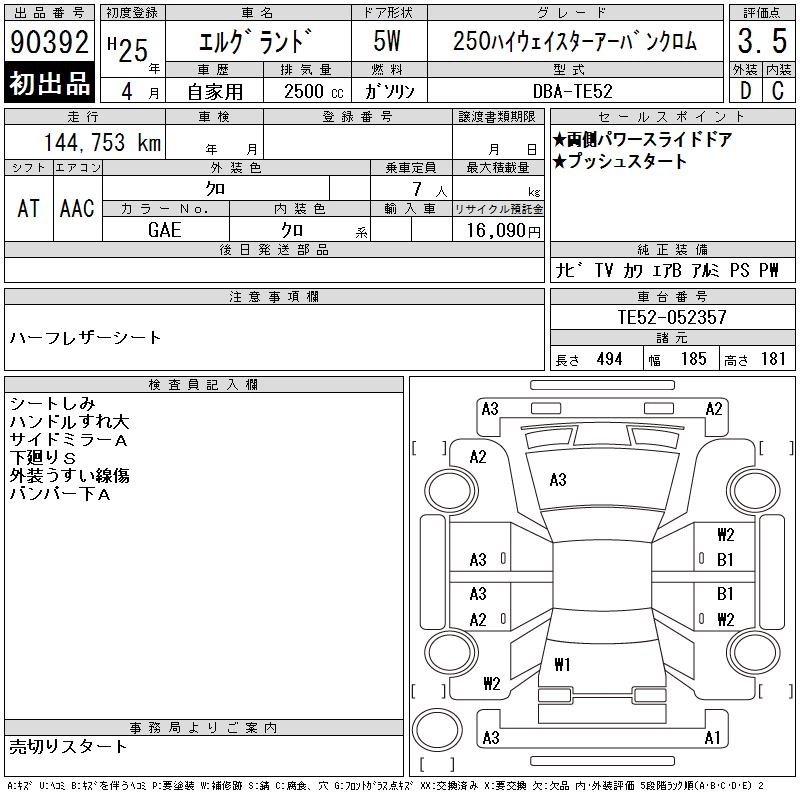 NISSAN ELGRAND 2013 г., лот № 90392