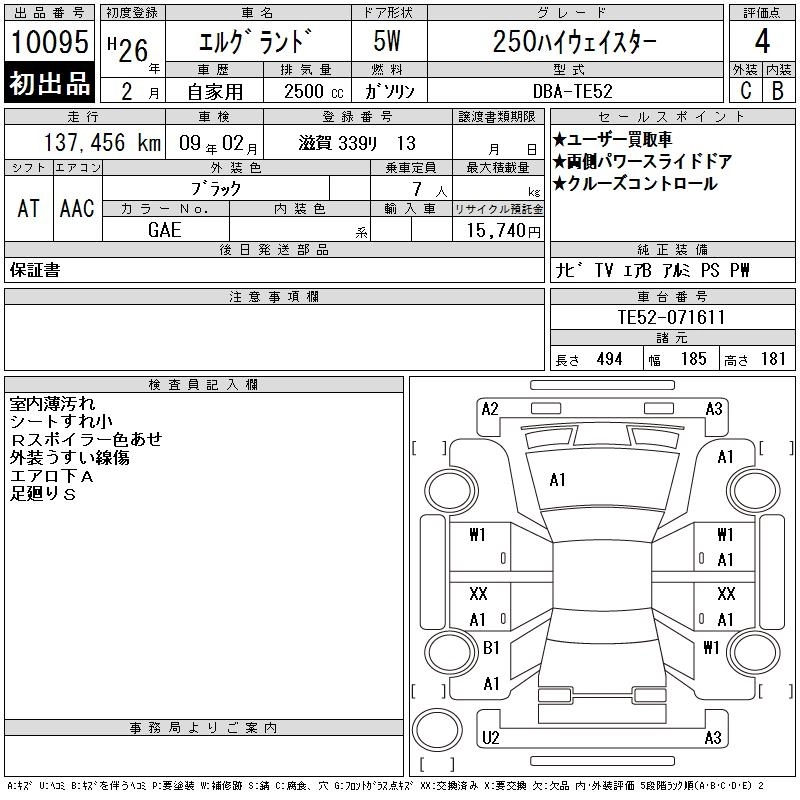 | RIDER BLACK LEATHER SEAT | DBA-TE52 | QR25DE | FF | CVT | 2488cc | 170ps(125kW)/5600rpm | AИ-92 | 4 185 000 | |