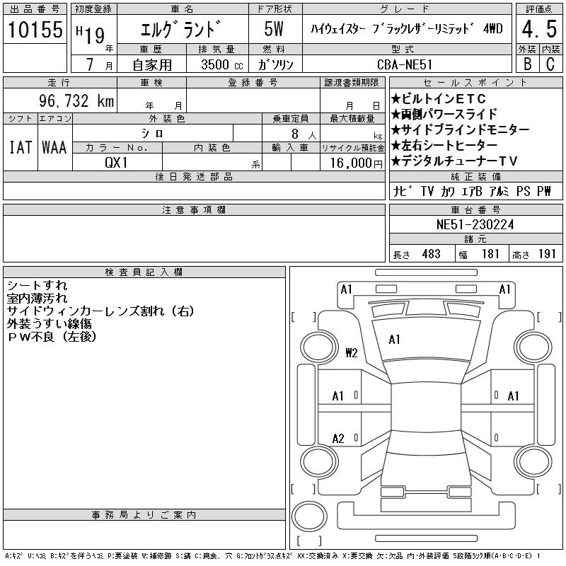 | RIDER | CBA-NE51 | VQ35DE | Full-time 4WD | 5AT | 3498cc | 240ps(177kW)/6000rpm | AИ-95 | 4 053 000 | |