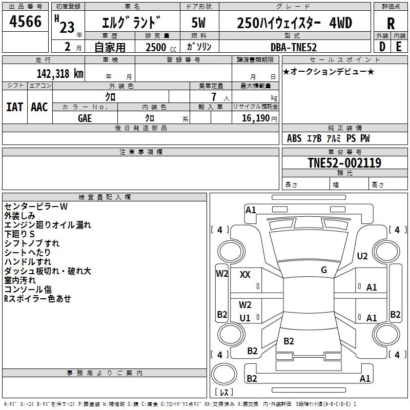 | RIDER WHITE LEATHER SEAT MANUAL SEAT | DBA-TNE52 | QR25DE | Full-time 4WD | CVT | 2488cc | 170ps(125kW)/5600rpm | AИ-92 | 4 147 500 | |