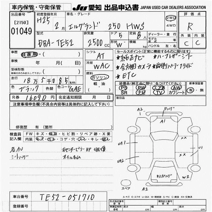NISSAN ELGRAND 2013 г., лот № 1049